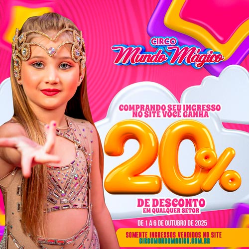 Ingresso Circo Mundo Mágico |Campo Verde – MT | 17/10/2025 – Sexta-Feira | R$ 11,00 – R$ 44,00Price range: R$ 11,00 through R$ 44,00 → Incluso taxa de compra online |