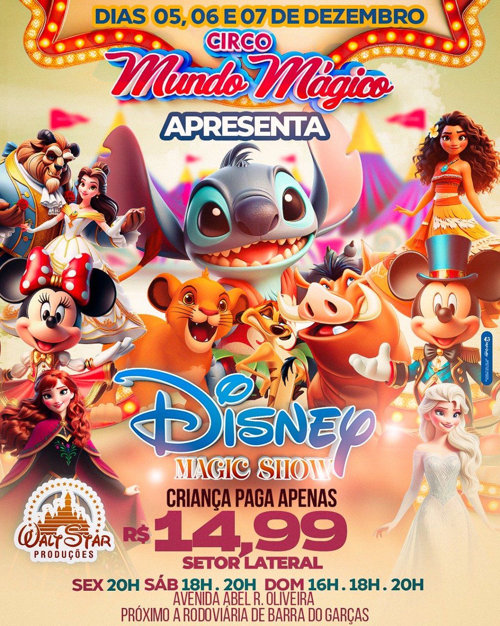 • Ingresso Circo Mundo Mágico | Barra do Garças - MT| 06/12/2025 - Sábado 2ª Sessão ás 20hs